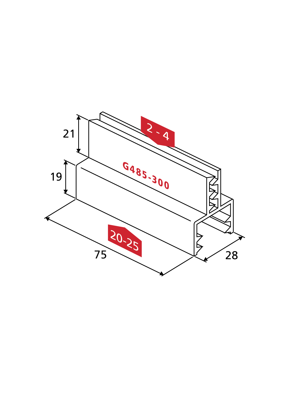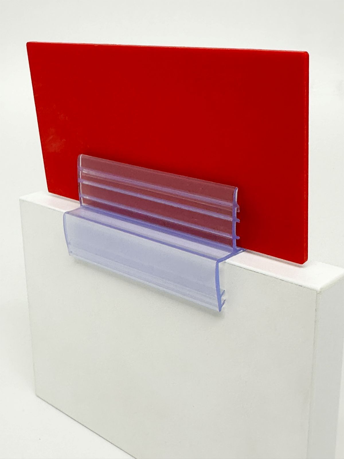 Tento čirý, extrudovaný držák je navržen tak, aby se pevně nasadil na desky s tloušťkou 20 až 25 mm, zatímco jeho horní část s technologií SuperGrip zajistí bezpečné uchycení vloženého materiálu (2 - 4 mm), jako je papír, karton, plast nebo dibond.