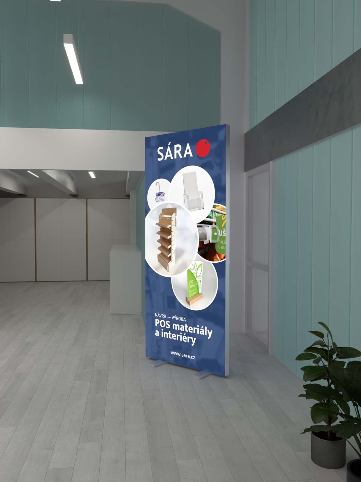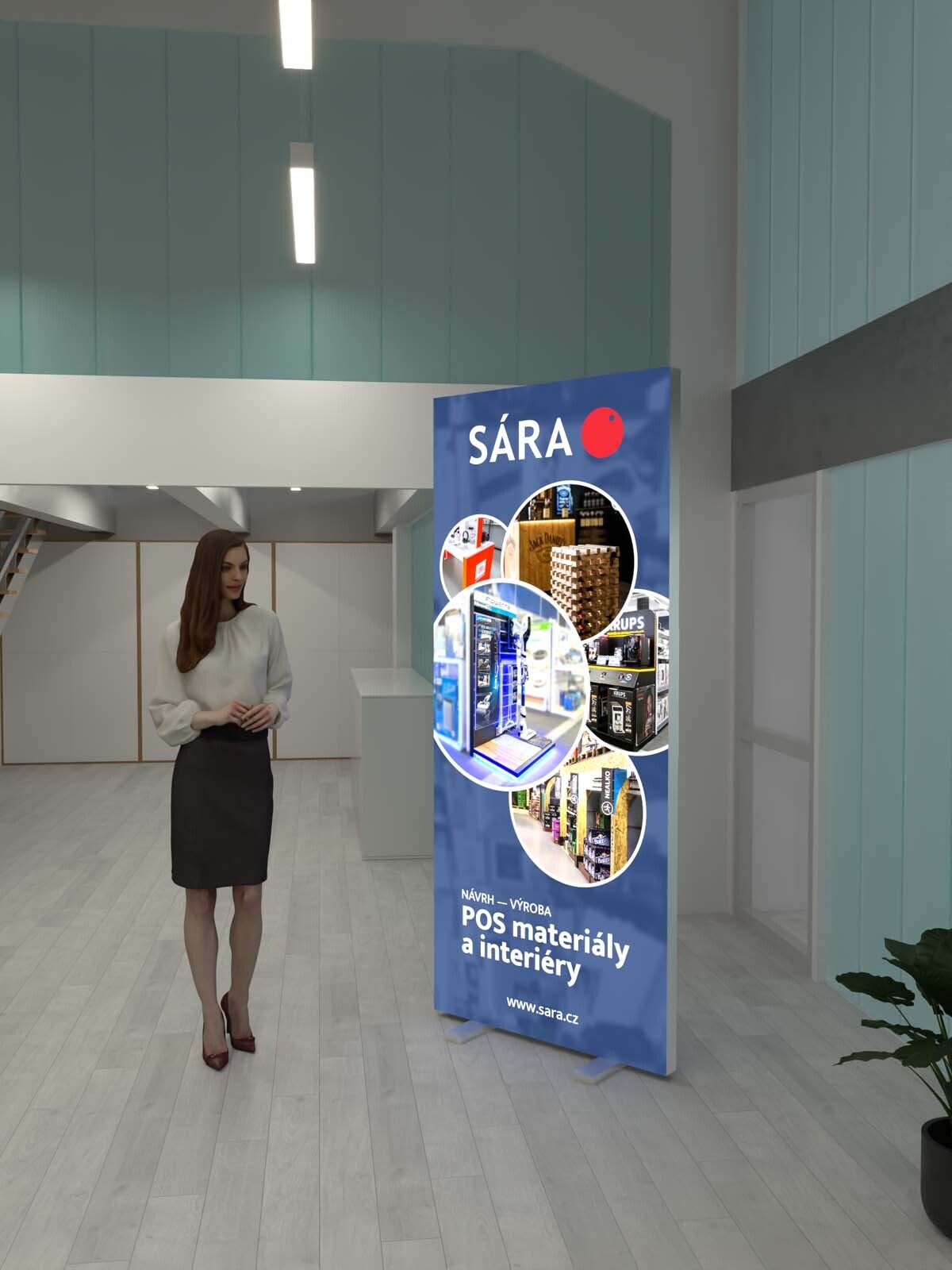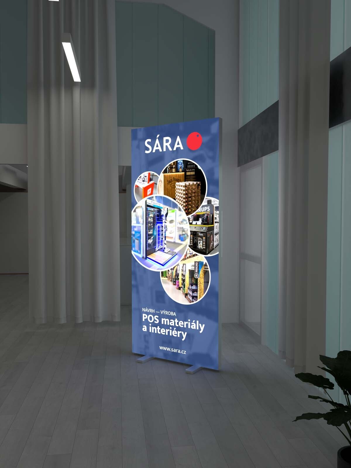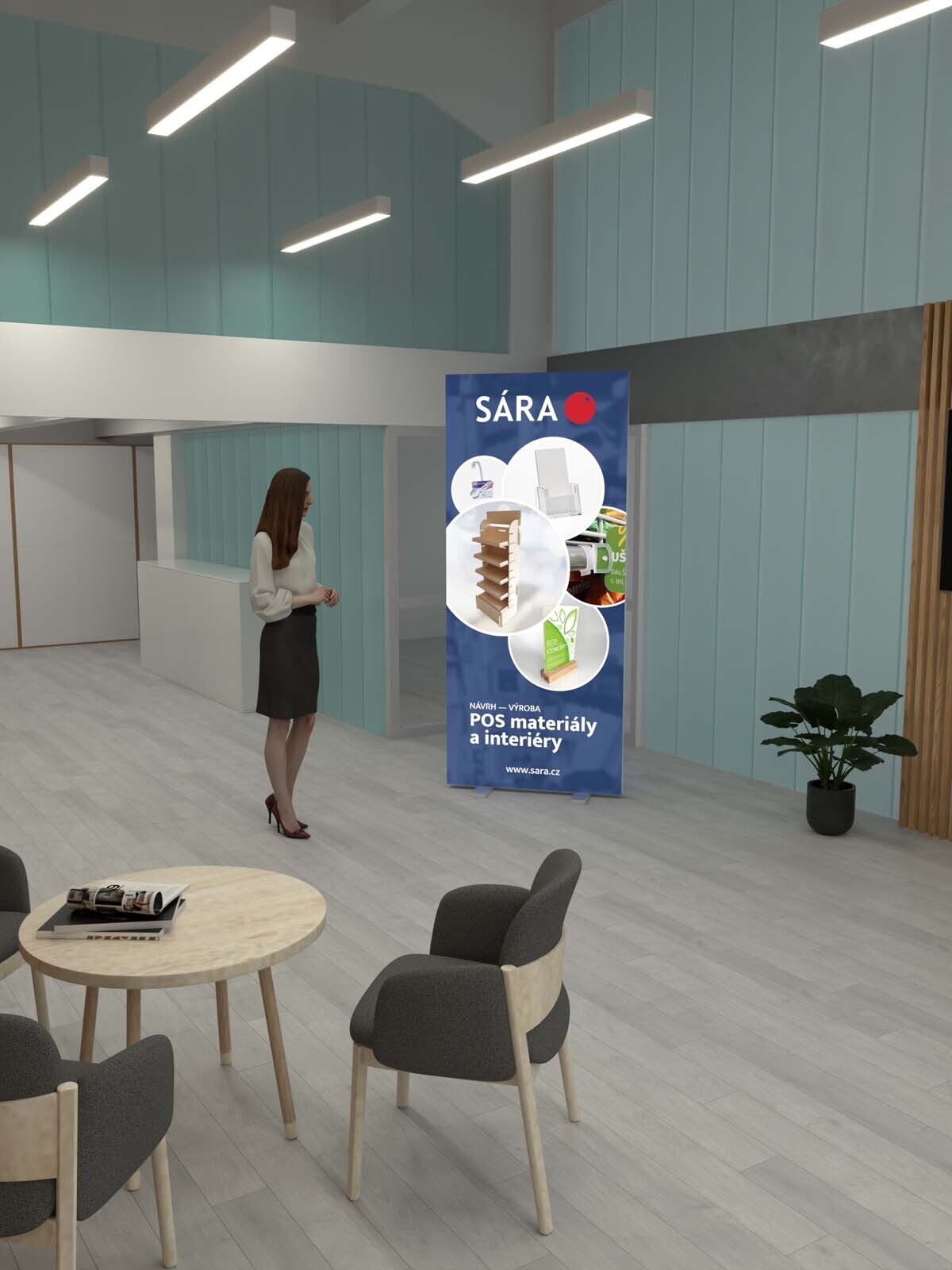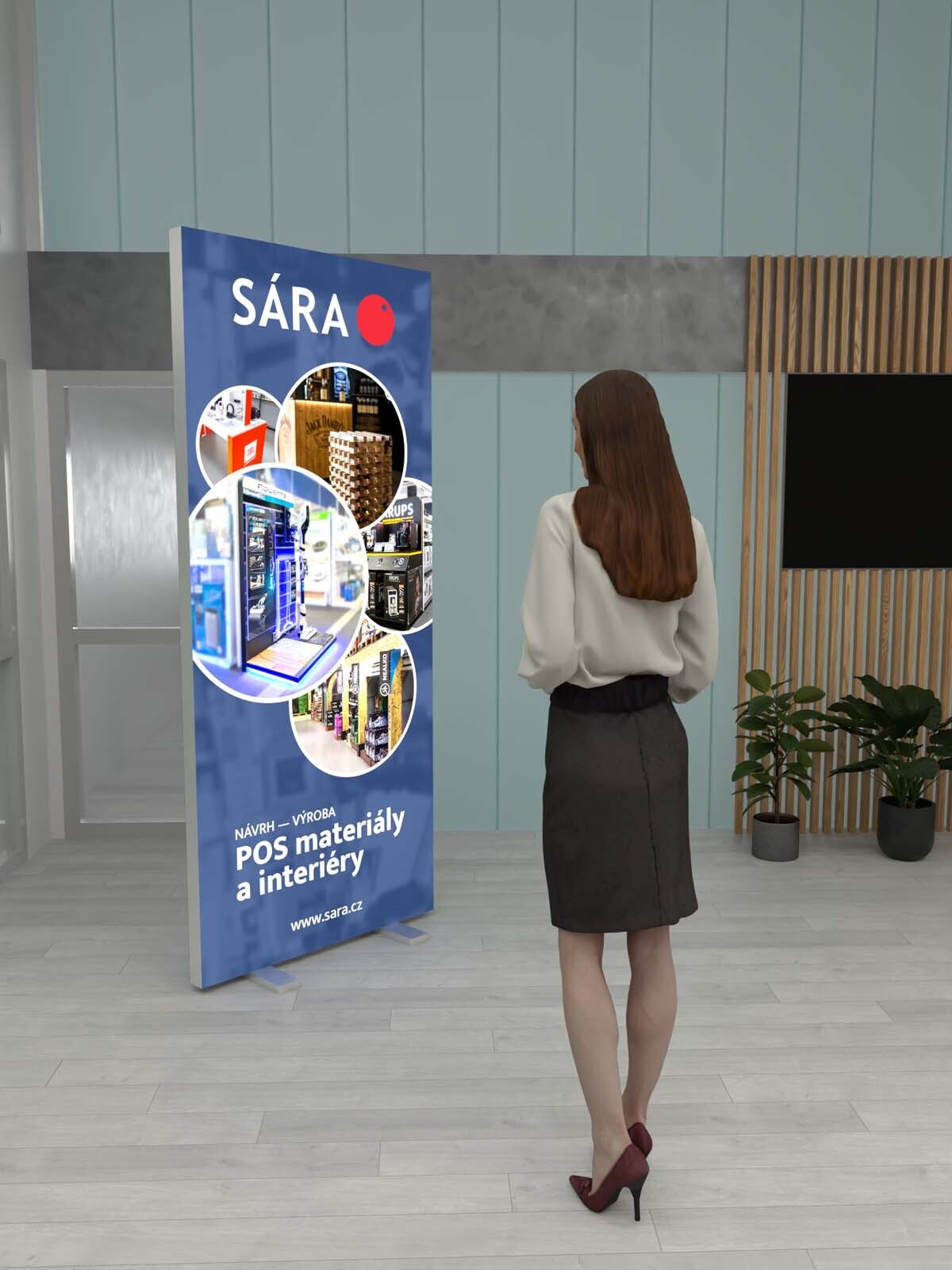 • Oboustranná prezentace: Samostojná prezentační stěna vám umožní maximalizovat reklamní prostor díky zobrazení z obou stran.